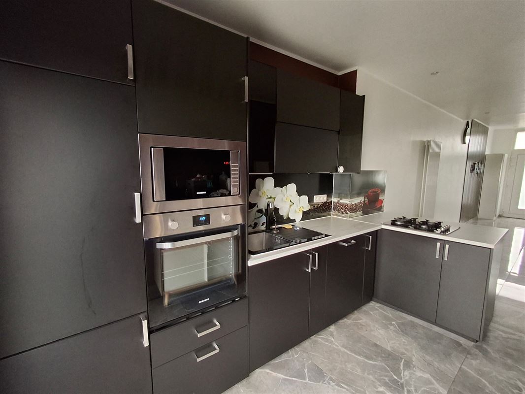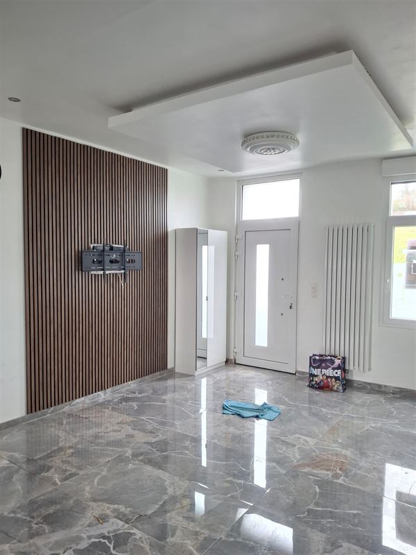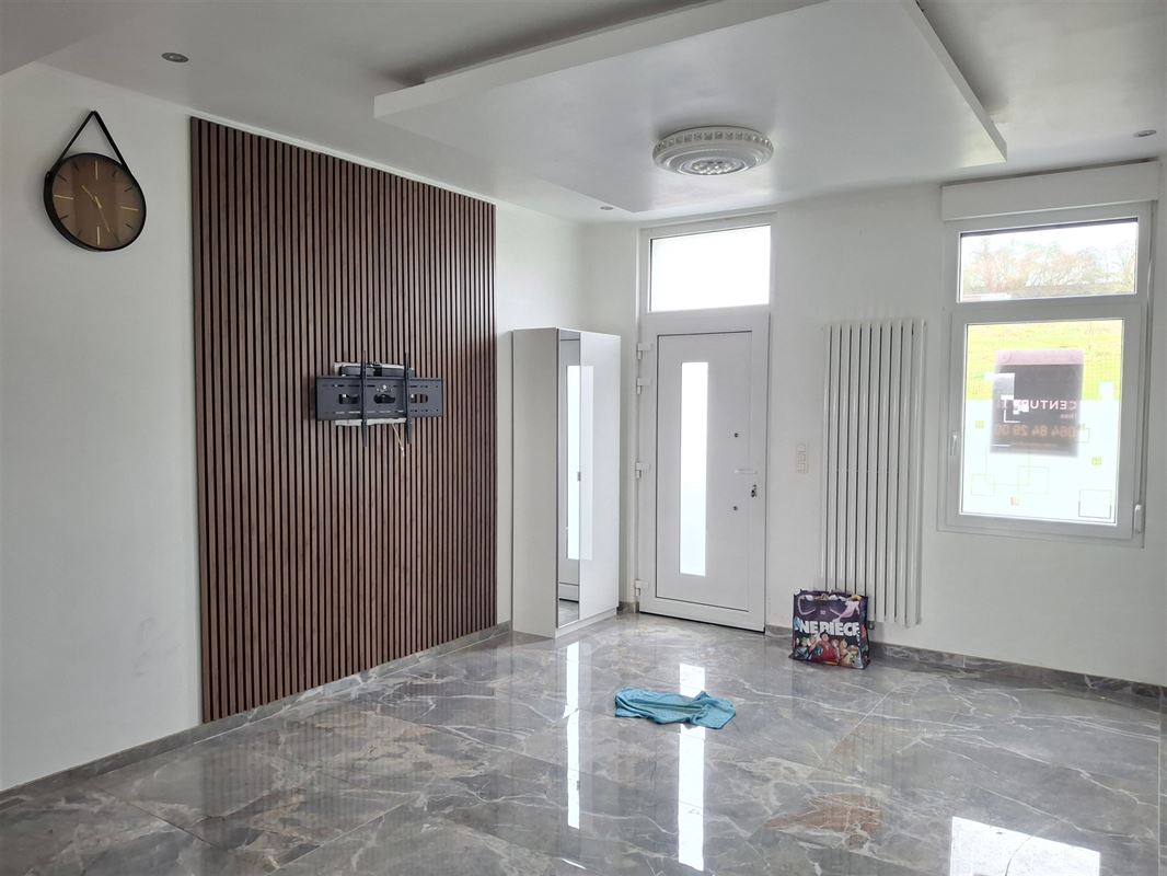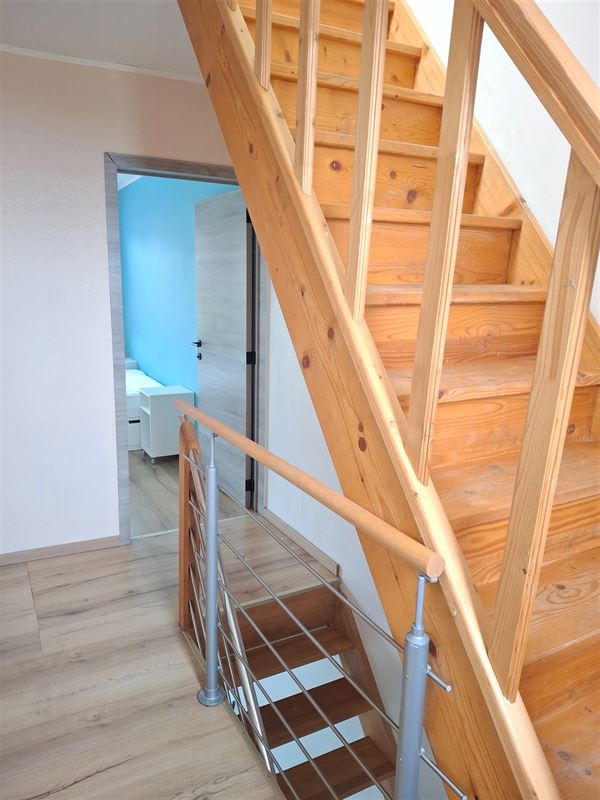 Maison rénovée avec vue sur une prairie composé d'un living, cuisine équipée ouverte sur le living, salle de bain avec wc, 2 belles chambres au 1er étage et une grande chambre au grenier avec wc et lavabo. Cour. Chauffage central au gaz avec cuve au gaz.Un emplacement de parking.